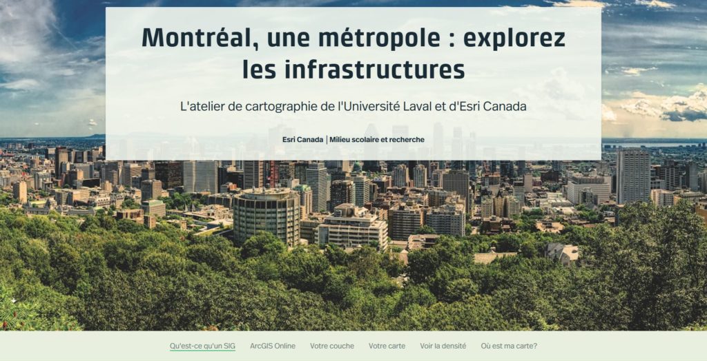 Avec la collaboration d’ESRI Canada et du département de géographie de l’Université Laval, un premier atelier cartographique a eu lieu au mois d’octobre. Cet atelier a permis à deux groupes de première secondaire du Collège de Champigny de créer une carte à partir des produits ArcGIS Online.